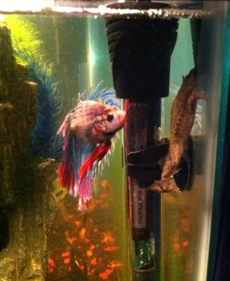 A Beta, also known as a ‘Siamese Fighting Fish’ should be the centerpiece of your aquarium. They are smart and they live for years. They thrive in an aquarium setting with frogs and docile, sociable, fish. Most pet stores will tell you that Betas cannot socialize with other fish and that they must be kept in small bowls but that is not true and if you want your lucky Beta to be a companion for many years, you will get him an aquarium. Our favorite aquarium fish originated from tropical creeks and streams and socialized with other fish. Betas are only aggressive to other Betas or fish with big tails. Spend the extra money to get yourself a Half-Moon Beta. You will pay about $16.00. Look for a fish with mostly red or gold markings. Buy one.